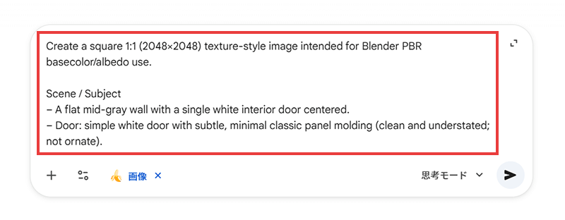 まずはBlenderに貼るための「扉の画像」をAIで用意します。