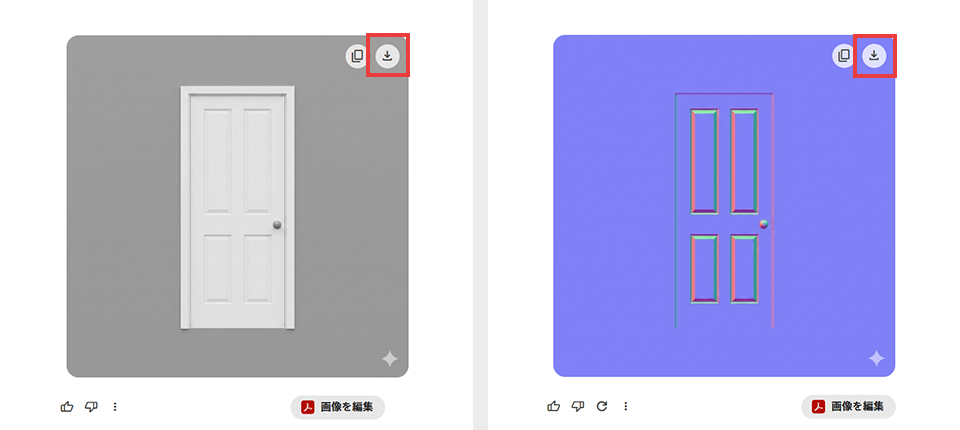 メイン画像とノーマルマップの2枚ができたら、ダウンロードしてPCに保存します。