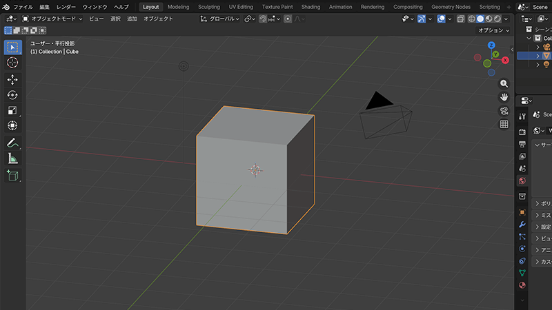 まず、テクスチャを貼りたいオブジェクト(例:キューブ)をクリックして選択します。