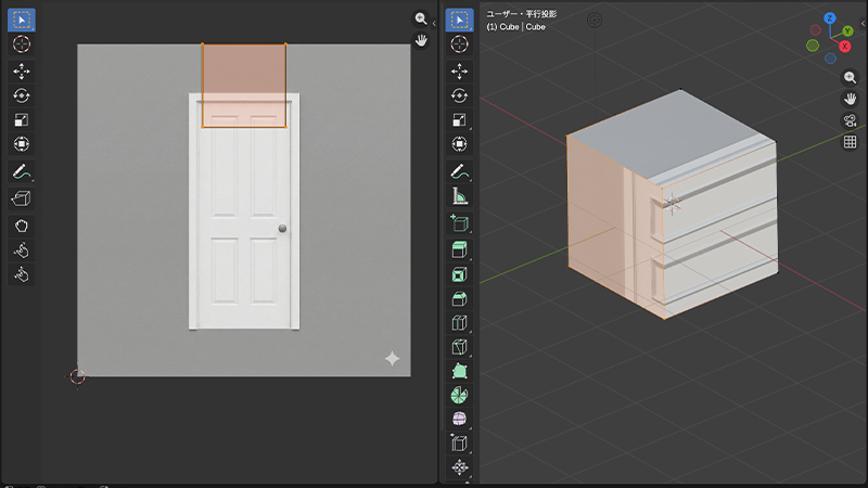 この作業をしないと、扉の絵が横や上の面にも貼られてしまって不自然になります。
