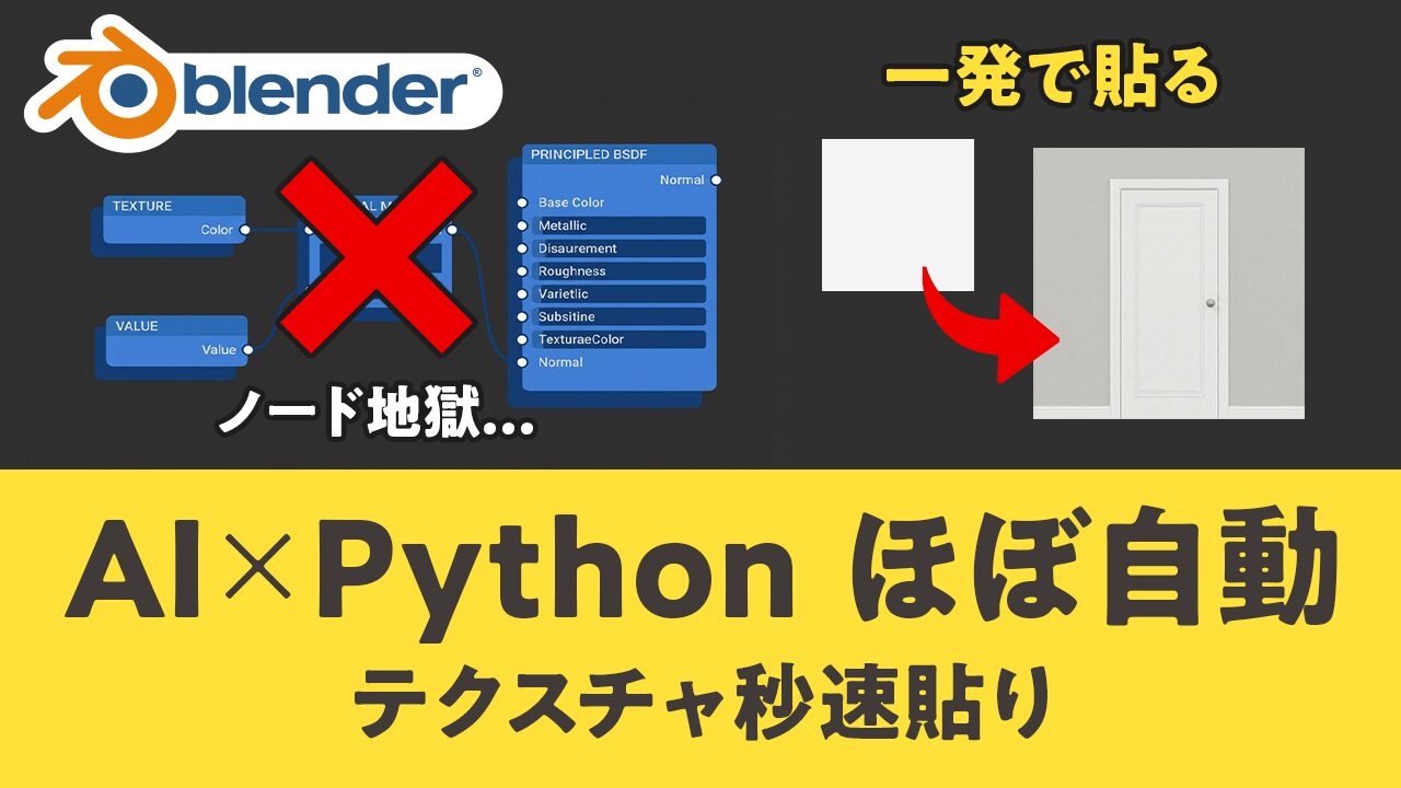 今回は、AIでテクスチャを作り、BlenderではPythonで一発セットする方法を紹介します。最後にUVを少し調整して、正面だけに自然に貼れるところまで再現します。